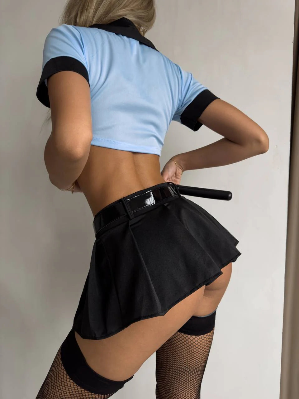Karštas policininko kostiumas – užburiantis įvaizdžius, sukaustantis širdis. Šis drąsus policininko kostiumas puikiai subalansuoja autoritetą ir žavesį. Šį rinkinį sudaro aptempta palaidinė, mini sijonas ir visi būtini aksesuarai – kepurė, diržas, ženklelis, antrankiai ir lazda – ir tai suteikia jums leidimą jaudintis. Nesvarbu, ar norite kontroliuoti situaciją, ar esate žaismingai įveikiami, jūsų laukia pašėlęs vaidmenų žaidimo vakaras.